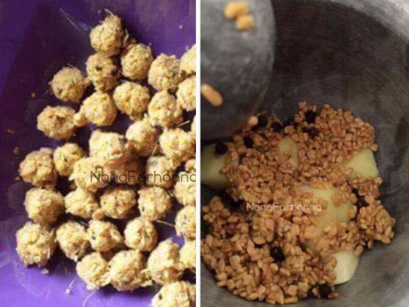 1. Tumbuk halba, lada hitam, halia dan bawang putih hingga hancur.