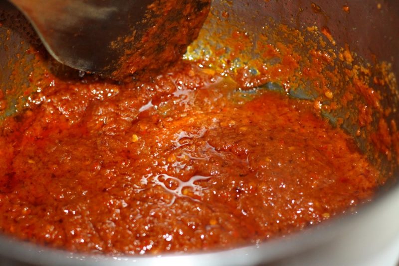 Pastu rebus, cuci lagi dan baru kisar. Kalau nakkan biji cili hancur masukkan sedikit minyak masak bersama air.